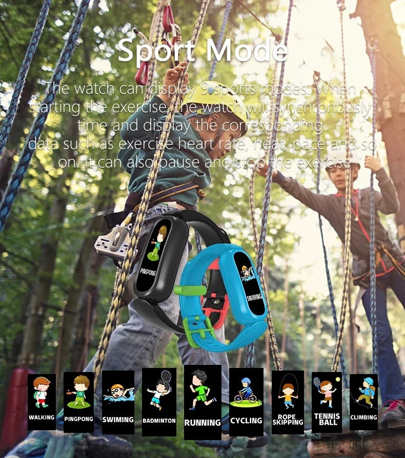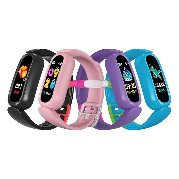 A fun colourful fitness tracker aimed at just kids. It has all the fitness tracking functions you need, like step counting, heart rate, sleep monitoring, sports modes and more. You can customise the home screen too.