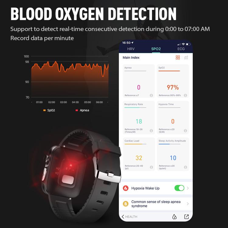 Blood Oxygen monitoring: The fitness tracker uses advanced sensors to detect blood oxygen, OS-AHS (breathing and hypoxia), and HRV from 00:00 to 07:00 AM.