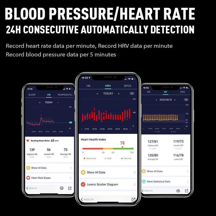 24/7 Heart Rate + Blood Pressure Monitor. Electrodes+green light +red light+infrared 4 layers detection, smartwatch help automatically monitor HR every minute & BP every 5 minutes and record the daily data to form reports.