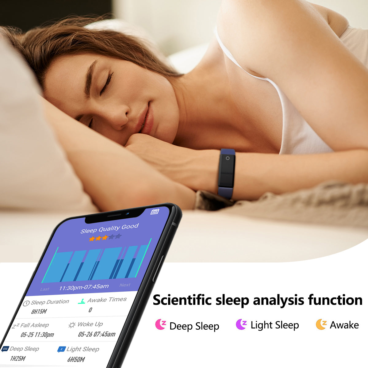 😴【DIY Watch Face & Smart Sleep Monitor】Unique Personalized watch face function fitness watch, traking your sleep from 8:00 pm to 10: 00 am. Record the sleep duration, awake times, deep sleep and light sleep to analyze your sleep quality.