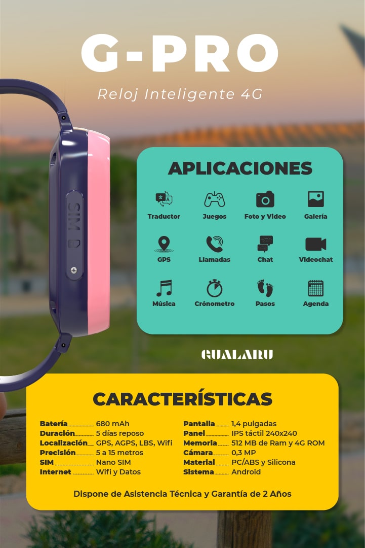 El Reloj Inteligente G-PRO es un modelo con tecnología avanzada 4G lo que permite disponer de un sistema operativo Android limitado por el control parental. Cubre todas las funciones del modelo 2G además de APP que sólo son posibles gracias a la tecnología 4G.
